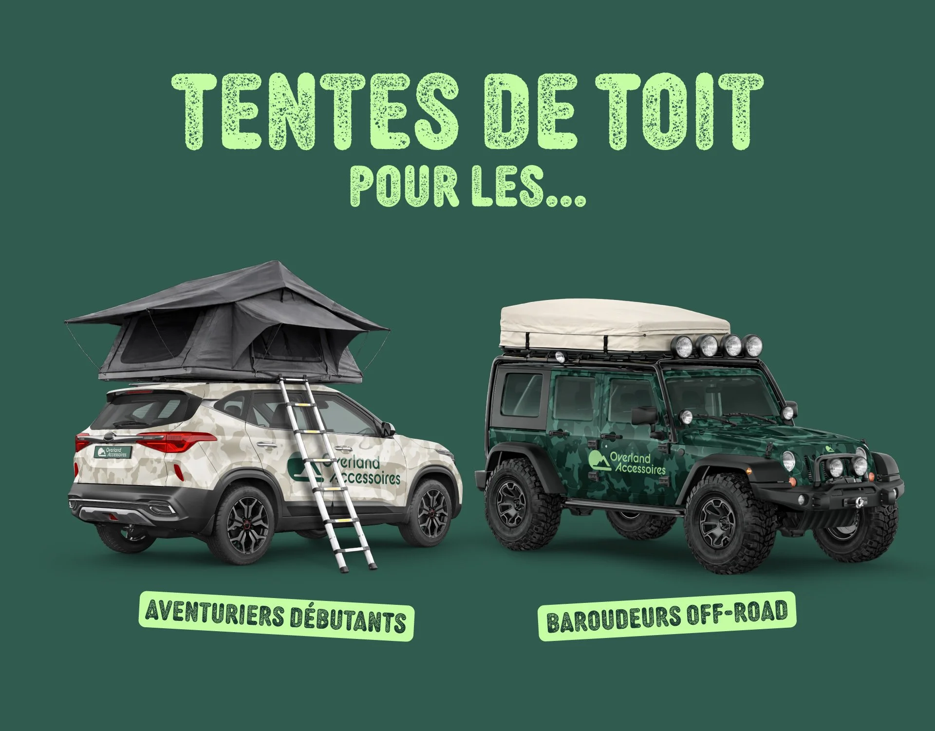 Ce projet de création d’identité visuelle s’inscrit pleinement dans cette évolution. La marque e-commerce Overland Accessoires propose des tentes de toit et des accessoires pensés pour des débutants, curieux de nature, qui souhaitent découvrir l’outdoor de manière accessible, ludique et décomplexée.