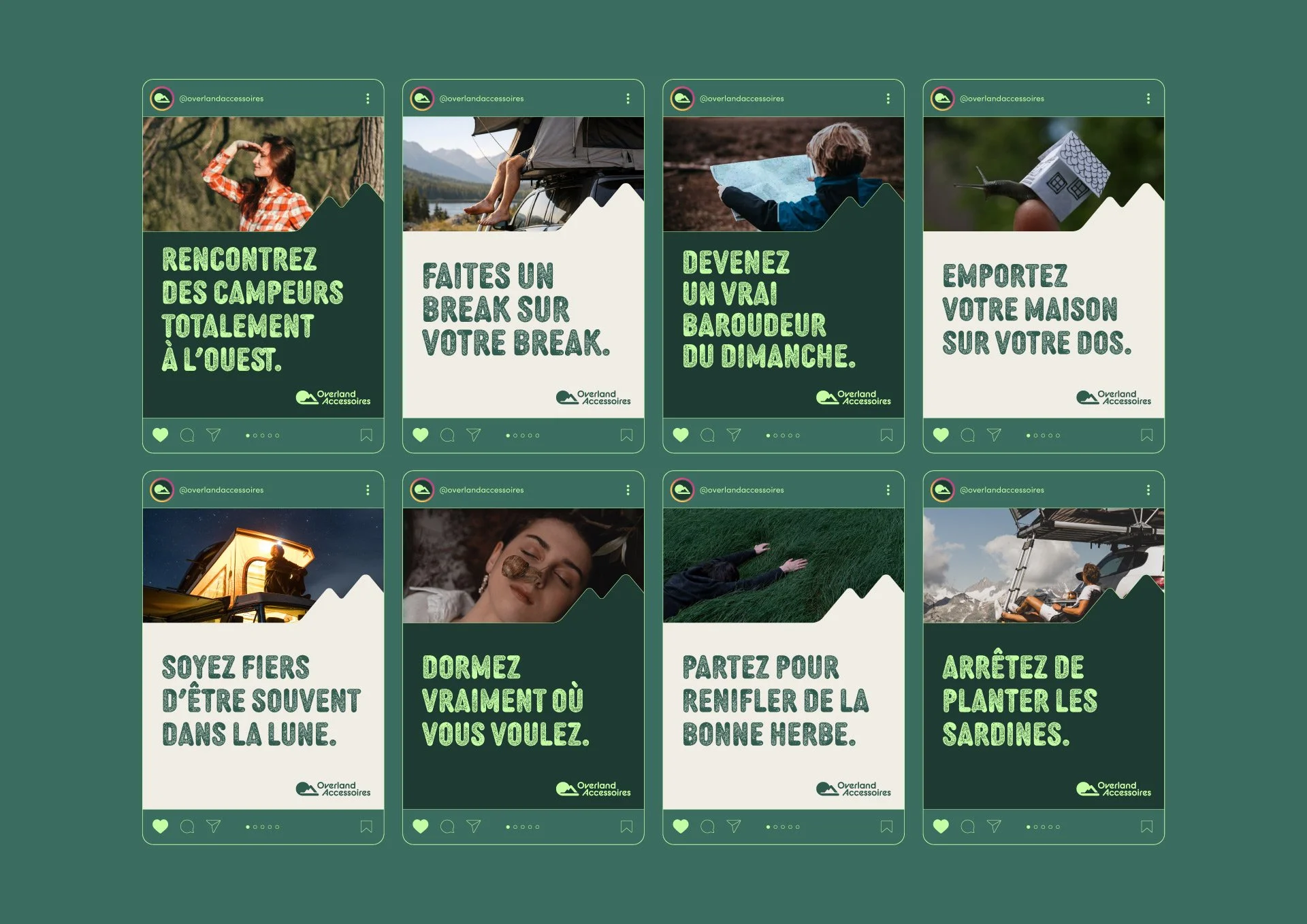 Ce projet montre qu’une marque d’overlanding peut exister sans discours complexe ni esthétique intimidante. En s’adressant à un public débutant, en quête de plaisir et d’évasion, l’identité visuelle devient un outil central : elle rassure, inspire et donne envie de se lancer.